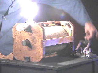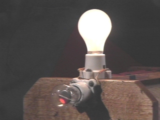 | A large solenoid in parallel with two lamps causes them to flash brightly when power is switched on or off. (Disc 21-3, 48 sec.) |