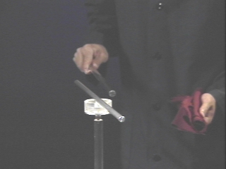 | A metal rod is attracted by charged rods of either polarity, and a computer animation explains the action. (Disc 17-2, 1 min. 1 sec.) |