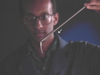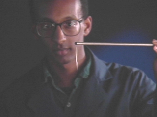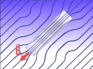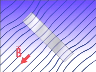 | A permalloy rod holds an iron strip only when aligned with the Earth's magnetic field. A computer animation explains the effect. (Disc 19-21, 38 sec.) |