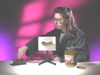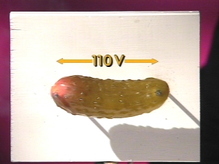 | A pickle glows from an electric discharge when an AC current passes through it. (Disc 18-15, 26 sec.) |