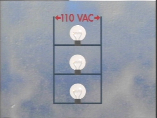 | Light bulbs are connected in series and parallel. A computer animation shows the difference between the two circuits. (Disc 17-24, 58 sec.) |