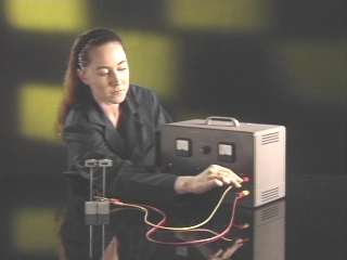 | A current is passed through a thermoelectric junction, causing heat to be transferred from one side to the other. (Disc 16-19, 50 sec.) |