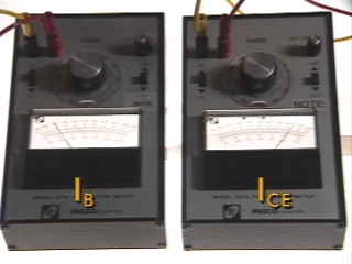 | Two ammeters in a transistor circuit show how a transistor amplifies current. (Disc 18-12, 59 sec.) |