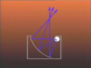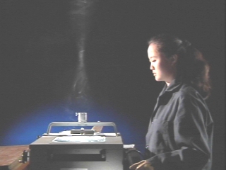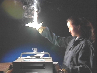 | Light focused by a concave mirror in an overhead projector sets a piece of paper on fire. (Disc 22-3, 46 sec.) |