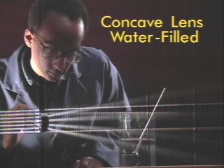 | Hollow concave and convex lenses are compared in and out of water when filled with water or air. (Disc 22-20, 1 min. 23 sec.) |