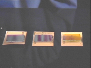 | Glass plates coated with different thicknesses of dielectric material transmit and reflect different wavelengths of light. (Disc 23-16, 49 sec.) |