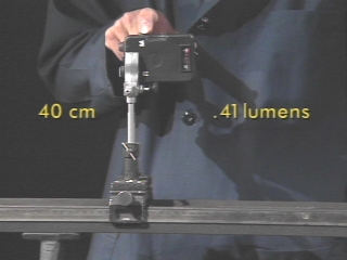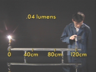 | A small filament light bulb and a photometer are used to verify the inverse square law. (Disc 21-10, 1 min. 5 sec.) |