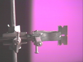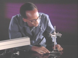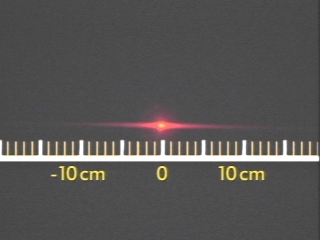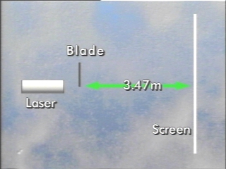 | A diffraction pattern is created when a razor blade is inserted into the path of a laser beam. (Disc 23-8, 28 sec.) |