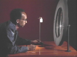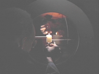 | A concave mirror forms real and inverted images depending on where the object is placed. (Disc 22-5, 50 sec.) |