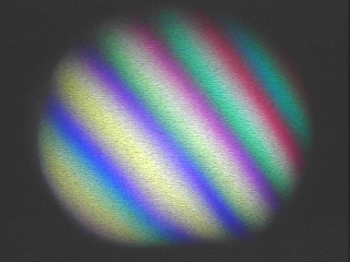 | A Michelson interferometer creates colorful interference patterns from a white light source. (Disc 23-20, 2 min. 4 sec.) |