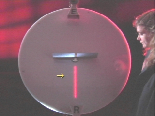| A microwave emitter and a receiver connected to an LED bar graph display are used to compare the diffraction patterns produced by narrow and wide slits. (Disc 23-1, 1 min. 9 sec.) |