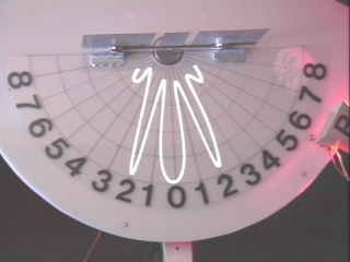 | A microwave emitter and a receiver connected to an LED bar graph display are used to compare the interference patterns from two different double slits. (Disc 23-10, 2 min. 3 sec.) |