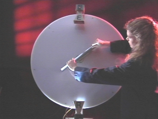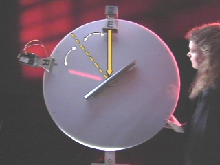 | A microwave emitter and a receiver connected to an LED bar graph display are used to show how microwaves are reflected from a metal plate. (Disc 21-18, 47 sec.) |
