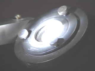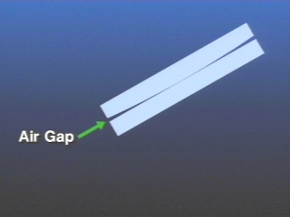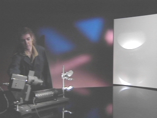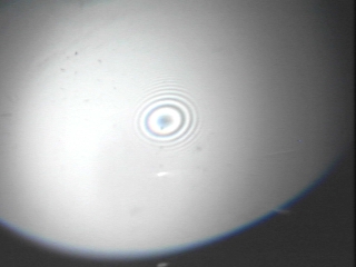 | A circular interference pattern is created when light is reflected off two glass surfaces held in contact. (Disc 23-15, 36 sec.) |