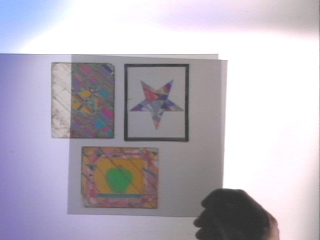 | Collages of cellophane tape between polarizing filters take on different colors when one of the polarizers is rotated. (Disc 24-9, 30 sec.) |