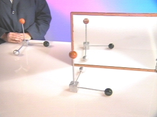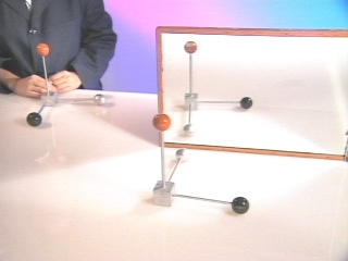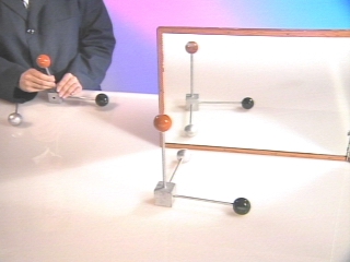 | Two cartesian coordinate axes are used to show that parity is reversed in the reflected image from a plane mirror. (Disc 21-22, 44 sec.) |
