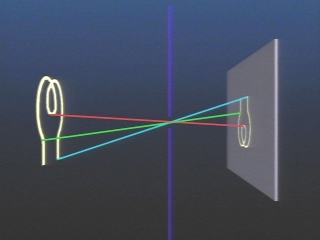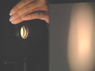 | An expandable iris is used to form an image of a light bulb filament. (Disc 21-9, 51 sec.) |