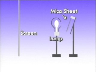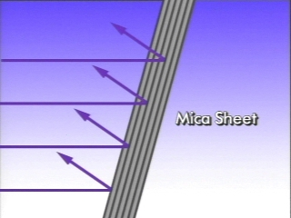| Light from a mercury lamp reflecting off a mica sheet creates an interference pattern. (Disc 23-17, 22 sec.) |