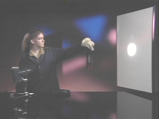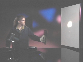 | Light from an arc lamp is polarized when reflected off a glass plate. (Disc 24-5, 43 sec.) |
