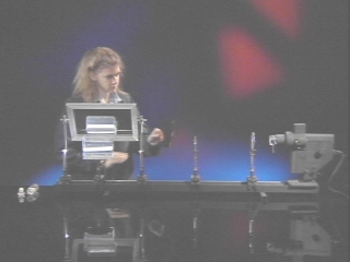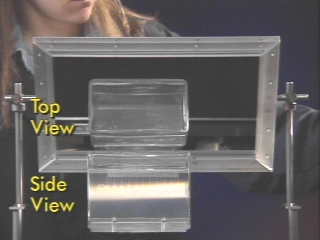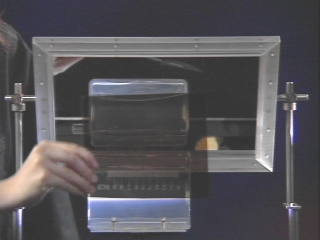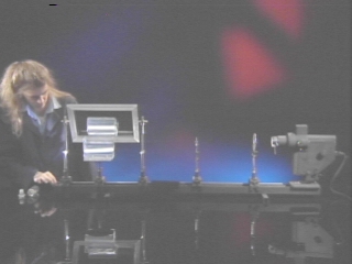 | Light scattered from small particles in a water tank is preferentially polarized. (Disc 24-7, 37 sec.) |