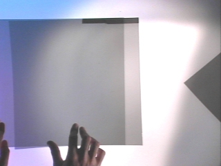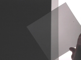 | When a polarizing sheet at a 45° angle is inserted between two other polarizers, some light passes through all three sheets. (Disc 24-3, 22 sec.) |