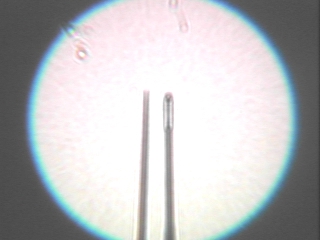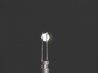 | A point source of white light is diffracted around the eye and tip of a needle. (Disc 23-6, 34 sec.) |