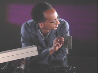 | A laser beam is diffracted after passing through a variable slit. (Disc 23-2, 55 sec.) |
