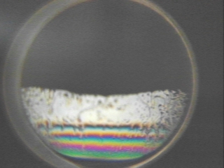 | White light reflected off the surface of a soap film creates an interference pattern that changes over time. (Disc 23-18, 1 min. 14 sec.) |