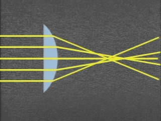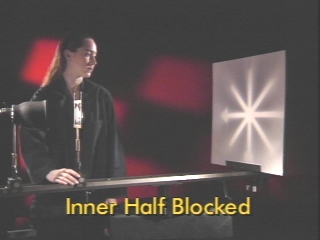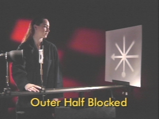 | The image formed by a lens focuses at different points depending on whether the outer or inner part of the lens is blocked. (Disc 22-21, 1 min. 10 sec.) |