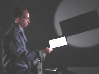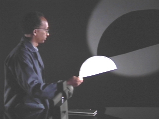 | Shadows produced by geometric shapes held in front of a point source verify that light travels in a straight line. (Disc 21-8, 25 sec.) |