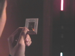 | The emission spectra from several light sources are viewed through a diffraction grating. (Disc 25-1, 47 sec.) |