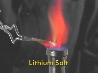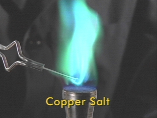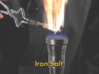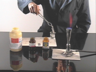 | Various salts are held over a burner to produce the flame colors typical of those materials. (Disc 25-7, 55 sec.) |