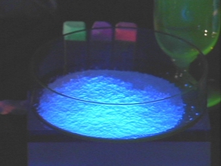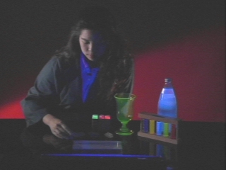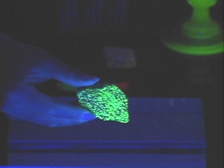 | Several objects that glow when illuminated by UV light are shown. (Disc 25-11, 54 sec.) |