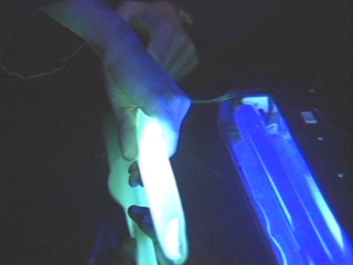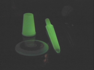 | Luminescent objects glow in the dark after being illuminated by UV light. (Disc 25-10, 28 sec.) |