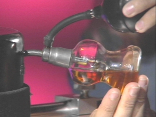 | A Millikan oil drop apparatus demonstrates the method used to determine the fundamental unit of charge. Computer graphics explain the function of the apparatus. (Disc 24-24, 1 min. 6 sec.) |