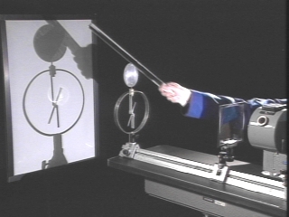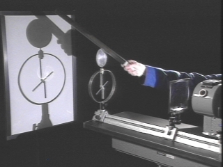 | A zinc plate connected to an electroscope is discharged by the ultraviolet light from an arc lamp only when it has a negative charge. (Disc 24-19, 1 min. 47 sec.) |
