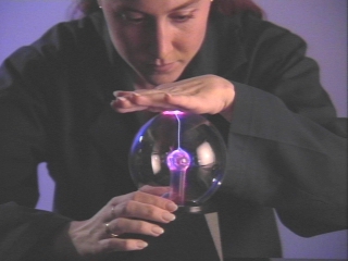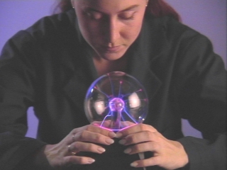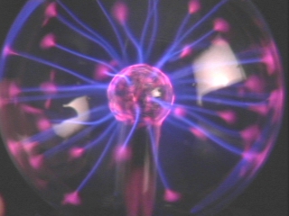 | A commercial plasma tube forms filaments of plasma from a high voltage, high frequency discharge into inert gases at low pressure. (Disc 25-6, 41 sec.) |