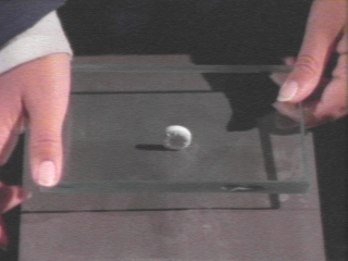 | A wintergreen candy is crushed to generate triboluminescent sparks. (Disc 25-9, 23 sec.) |